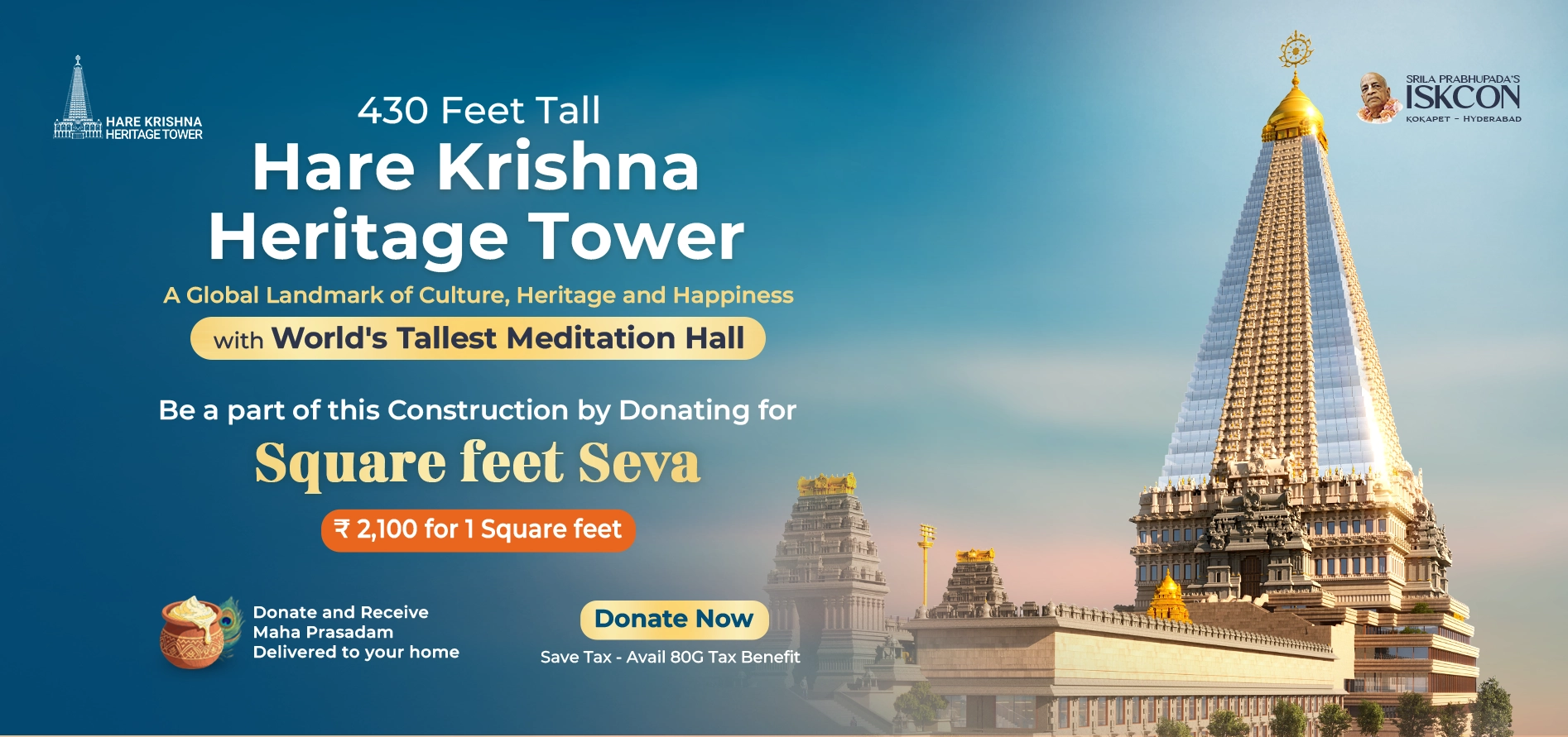 Akshara Akavaram (9390459049) needs your support to raise 5008 Square Feet for Hare Krishna Heritage Tower